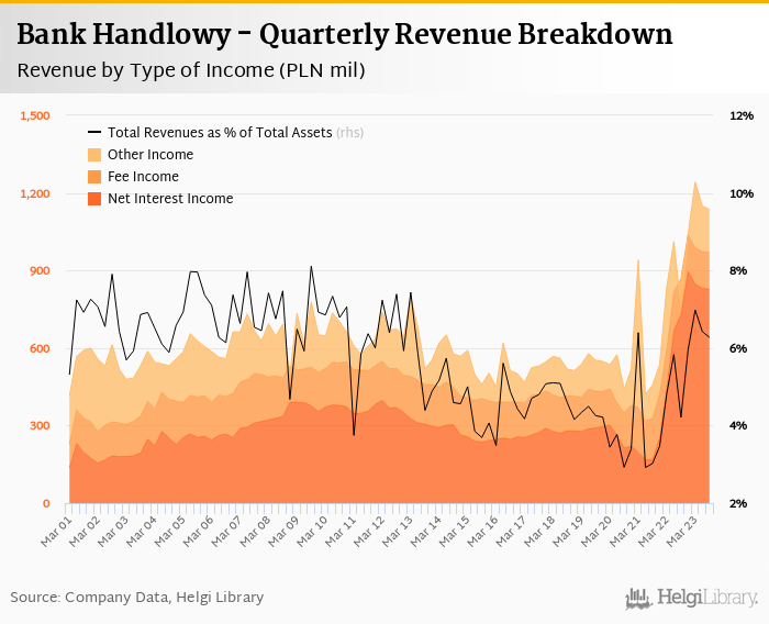 Bank Handlowy generated total banking revenues of PLN 1,136 mil in the third quarter of 2023, up 49.3% when compared to the same period of last year and down 1.25% when compared to the previous quarter.