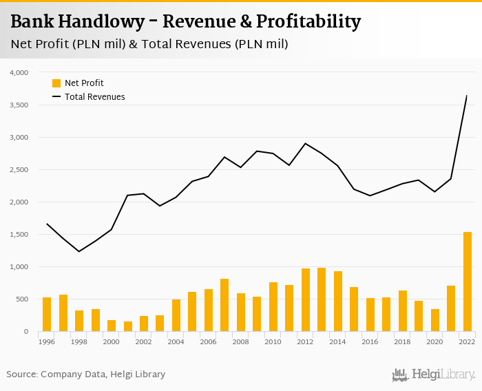 Comparing Bank Handlowy with its closest peers, PKO BP generated a net profit of PLN 3,312 mil with revenues of PLN 17,209 mil in 2022, Pekao netted PLN 1,719 mil (revenues of PLN 10,761 mil) and ING Bank Slaski announced a net profit of PLN 1,714 mil (revenues of PLN 7,697 mil).