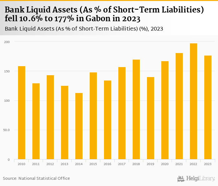 Bank liquid assets as a share of short-term liabilities fell 10.6% to 177% in Gabon in 2023, according to the National Central Bank.