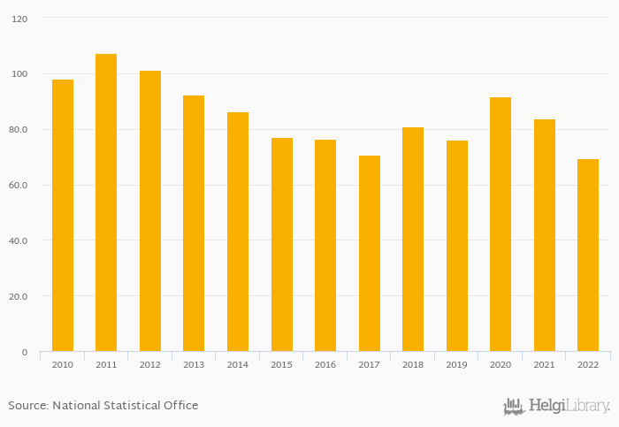 Bank liquid assets as a share of short-term liabilities fell 17.3% to 69.3% in Comoros in 2022, according to the National Central Bank.