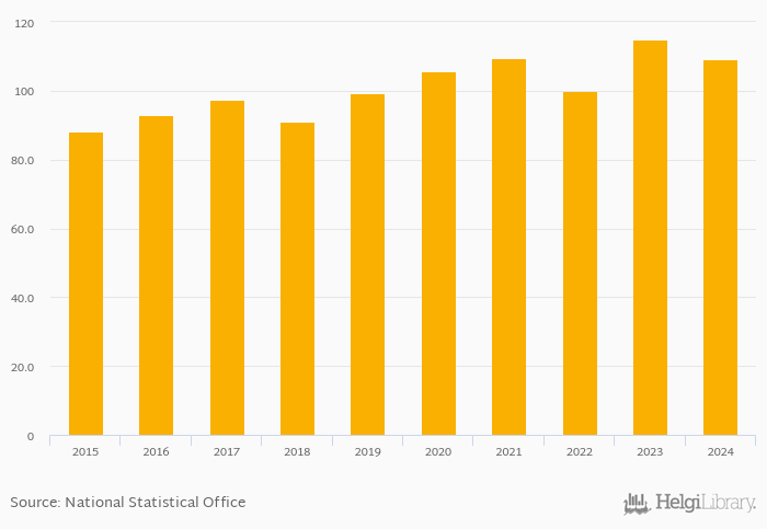 Historically, bank liquid assets as a share of short-term liabilities in Jordan reached an all time high of 115% in 2023 and an all time low of 88.1% in 2015.