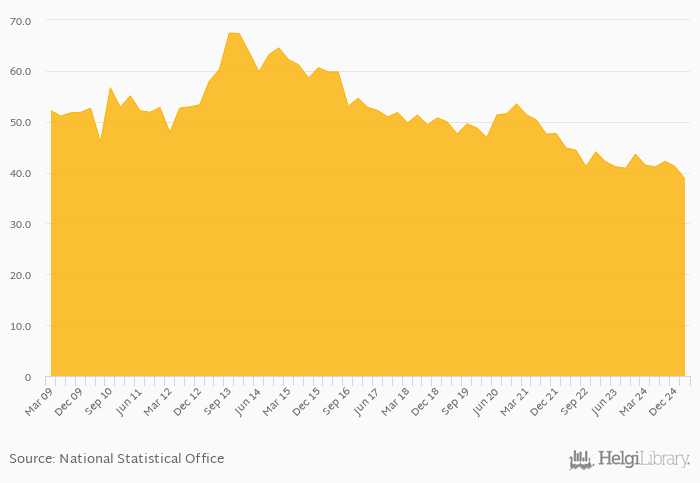 Historically, bank liquid assets as a share of short-term liabilities in Philippines reached an all time high of 67.4% in 3Q2013 and an all time low of 38.8% in 1Q2025.