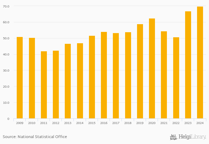 Bank liquid assets as a share of short-term liabilities rose 4.32% to 69.8% in Mauritius in 2024, according to the National Central Bank.