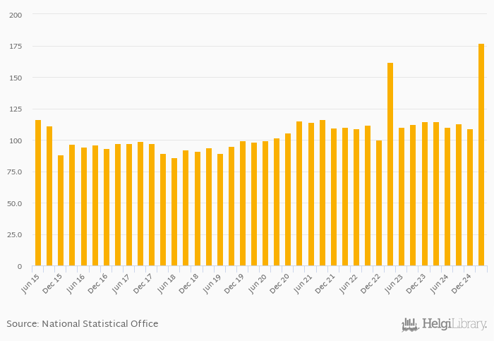 Historically, bank liquid assets as a share of short-term liabilities in Jordan reached an all time high of 177% in 1Q2025 and an all time low of 86.1% in 2Q2018.