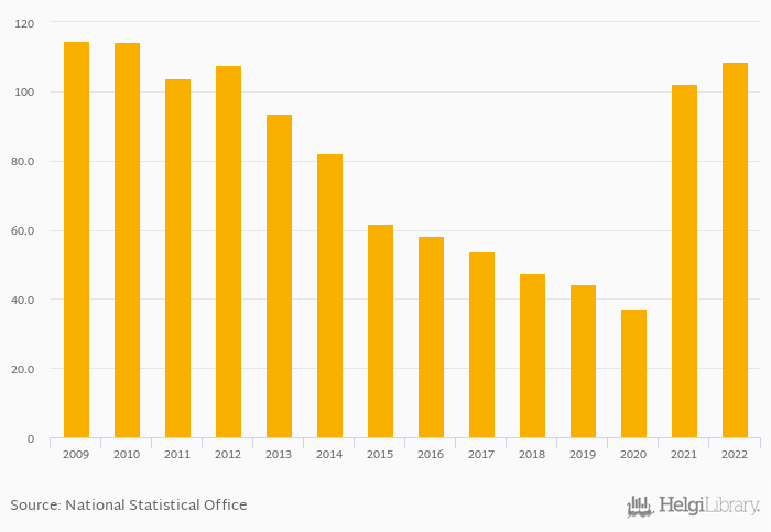 Bank liquid assets as a share of short-term liabilities rose 6.33% to 109% in Algeria in 2022, according to the National Central Bank.
