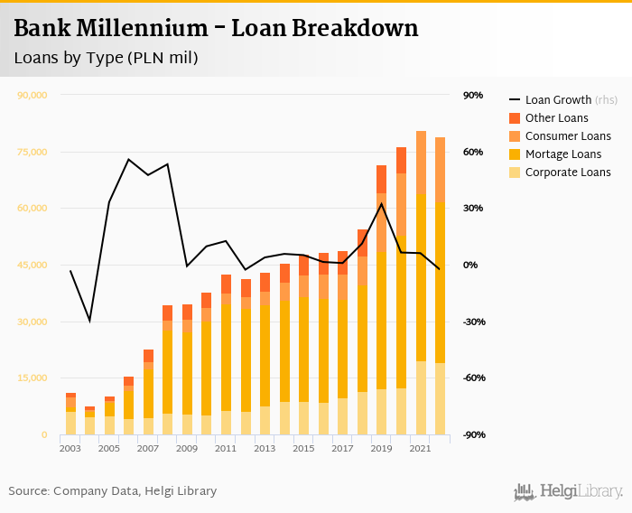 At the end of 2022, Bank Millennium's loans accounted for 78.1% of total deposits and 69.0% of total assets.