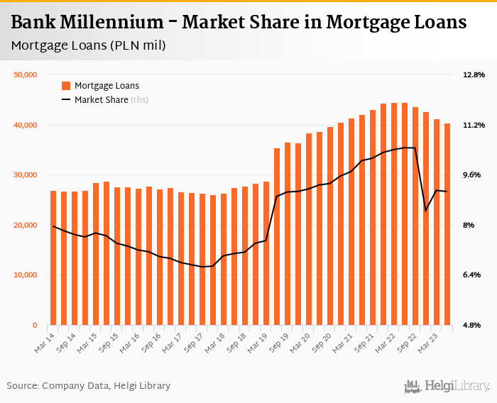 Bank Millennium's mortgage loans reached PLN 40,357 mil in 2Q2023, down 2.06% compared to the previous year.