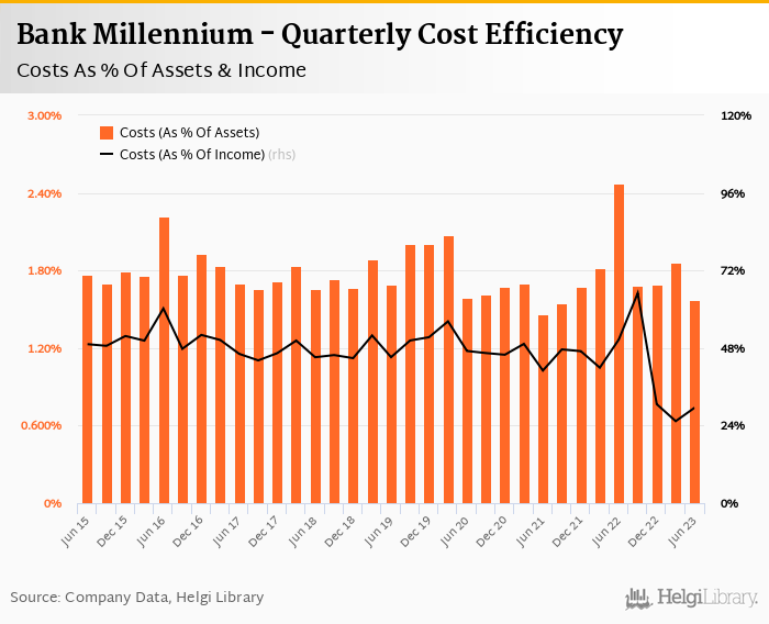 Bank Millennium's cost to income ratio reached 29.5% in the second quarter of 2023, up from 25.4% when compared to the previous quarter.