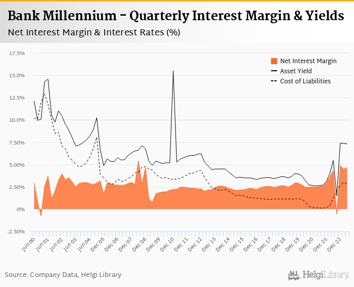 Bank Millennium's net interest margin amounted to 4.67% in the second quarter of 2023, up from 4.49% when compared to the previous quarter.