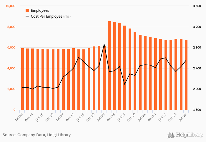 Staff accounted for 57.1% of total operating expenditures in 2023-06-30. The bank operated a network of 621 branches in 2023-06-30.