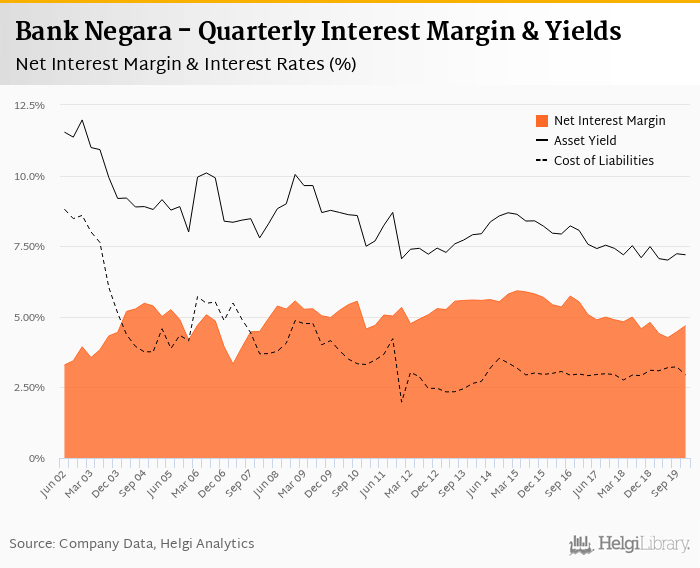 Bank Negara's net interest margin amounted to 4.69% in the fourth quarter of 2019, up from 4.47% when compared to the previous quarter.
