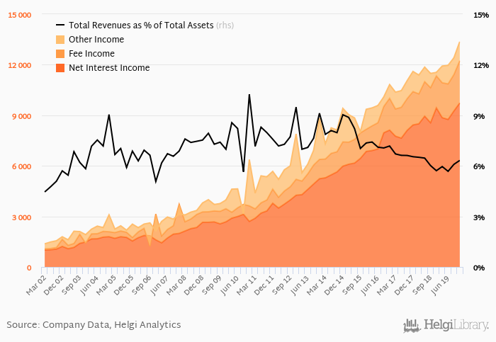 Bank's total revenues accounted for 6.32% total assets in the fourth quarter of 2019, up from 5.71% a year earlier.