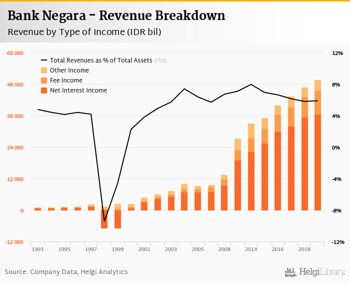 Bank Negara generated total banking revenues of IDR 49,658 bil in 2019, up 6.17% compared to the previous year.