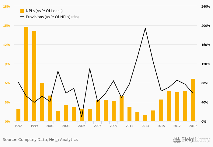Provision coverage amounted to 58.3% at the end of 2019, down from 77.1% compared to a year earlier.