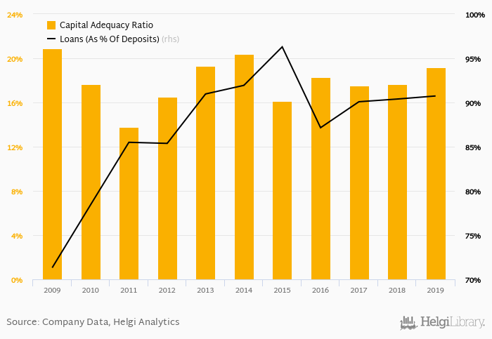 Bank's loan to deposit ratio reached 90.7% at the end of 2019, up from 90.4% when compared to the previous year. Some 10 years ago, loan to deposit ratio of the bank amounted to 71.3%.