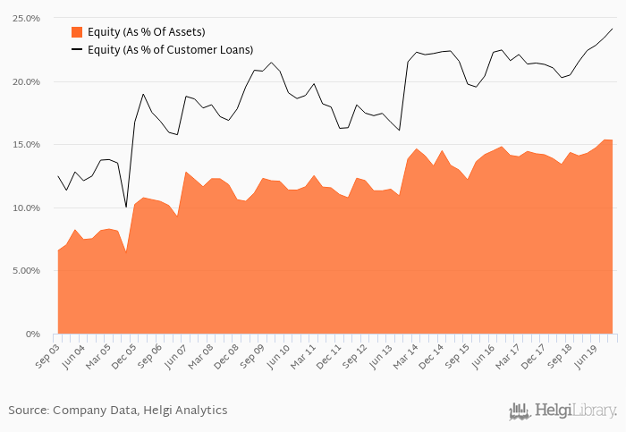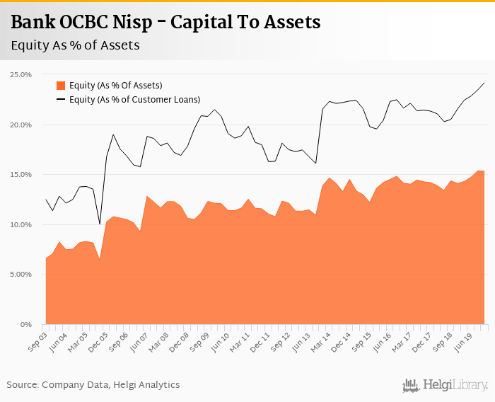 Bank OCBC Nisp's Equity reached 15.3% of total assets in the 4Q2019, up from 14.1% for the previous year. As a share of net customer loans, the ratio amounted to 24.2% at the end of the fourth quarter of 2019.