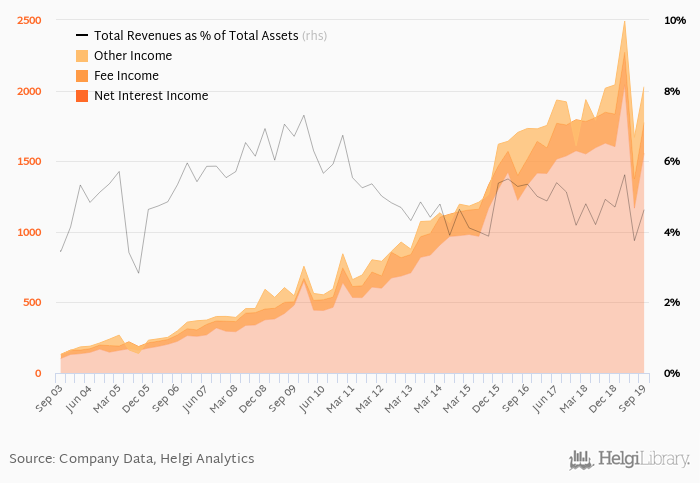 Bank's total revenues accounted for 4.63% total assets in the third quarter of 2019, down from 4.92% a year earlier.