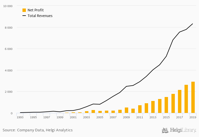 On the other hand, bank’s revenues amounted to an all time high of IDR 8,329 bil in 2019 and an all time low of IDR 27.9 bil in 1993. The average revenues in the last five years reached IDR 7,147 bil.