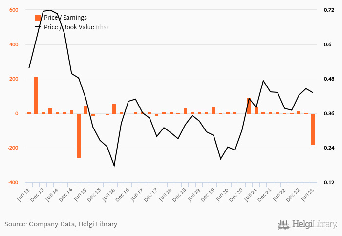 In terms of price to book value, the stock reached x at the end of 1Q1970. Since the first quarter of 1965, the multiple reached an all time high of x in 1Q1970 and an all time low of x in 1Q1970 with an average of