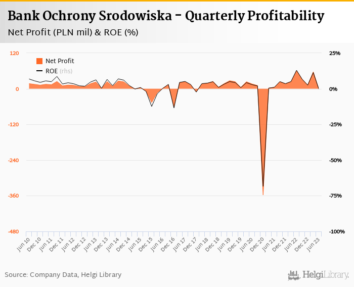 Bank Ochrony Srodowiska made a net profit of PLN -1.24 mil in the second quarter of 2023, down 102% when compared to the same period of last year. This implies a return on equity of -0.239%.