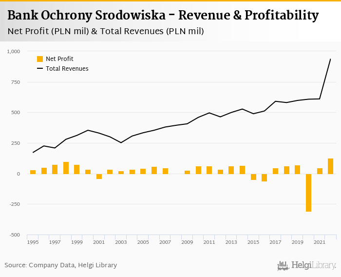 Bank Ochrony Srodowiska made a net profit of PLN 128 mil under revenues of PLN 938 mil in 2022, up 170% and 53.9% respectively compared to the previous year.