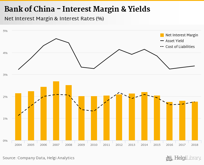 Bank of China's net interest margin amounted to 1.78% in 2018, down from 1.81% compared to the previous year.