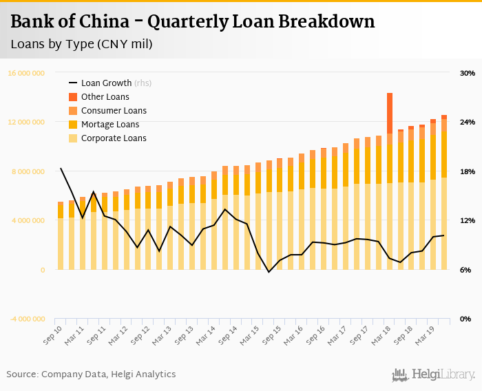 At the end of second quarter of 2019, Bank of China's loans accounted for 78.4% of total deposits and 55.1% of total assets.