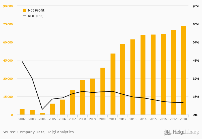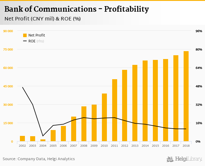 Bank of Communications made a net profit of CNY 73,630 mil in 2018, up 4.85% compared to the previous year. This implies a return on equity of 10.7%.