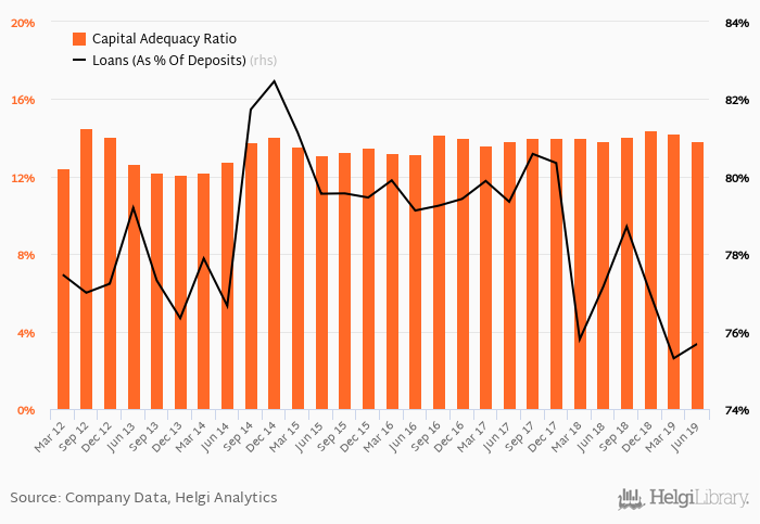 Bank's loan to deposit ratio reached 75.7% at the end of 2Q2019, down from 77.2% when compared to the same period of last year.