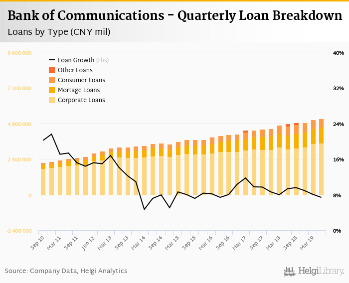 At the end of second quarter of 2019, Bank of Communications's loans accounted for 75.7% of total deposits and 50.7% of total assets.