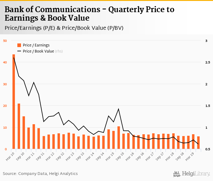 Bank of Communications stock traded at HKD 5.28 per share at the end second quarter of 2019 implying a market capitalization of USD 49,570 mil.