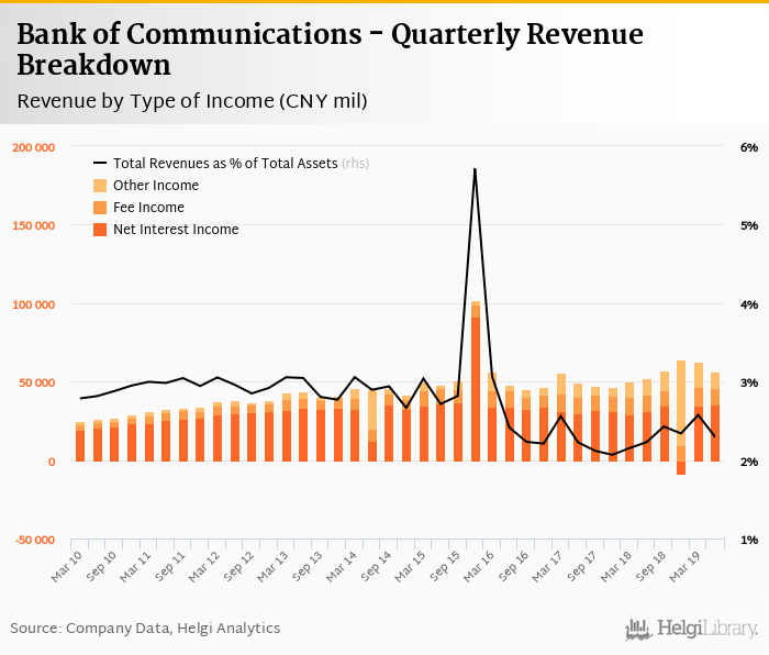 Bank of Communications generated total banking revenues of CNY 56,651 mil in the second quarter of 2019, up 9.07% when compared to the same period of last year and down 10% when compared to the previous quarter.