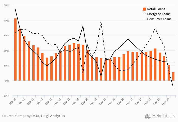 Overall, retail loans accounted for 33.0% of the bank's loan book at the end of 2019-06-30.