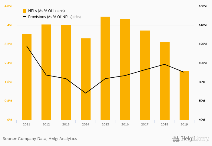 Provision coverage amounted to 90.0% at the end of 2019, down from 98.5% compared to a year earlier.