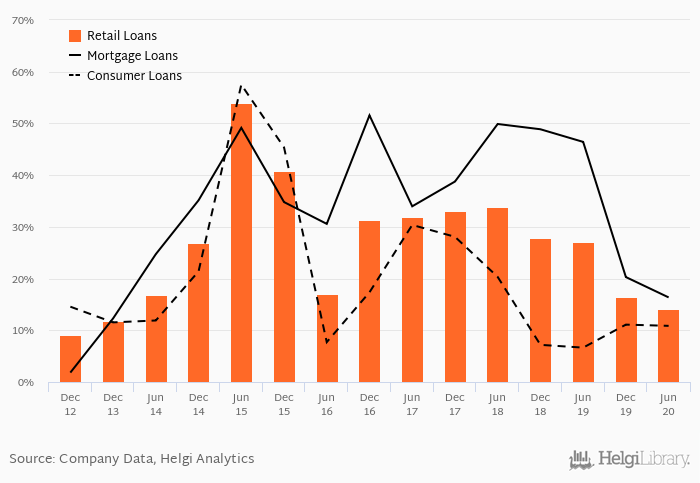 Overall, retail loans accounted for 43.3% of the bank's loan book at the end of 2020-06-30.