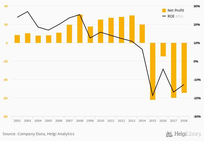 The bank generated its shareholders an average return on equity of -9.30% in the last five years with maximum at 6.34% and minimum at -18.8%
