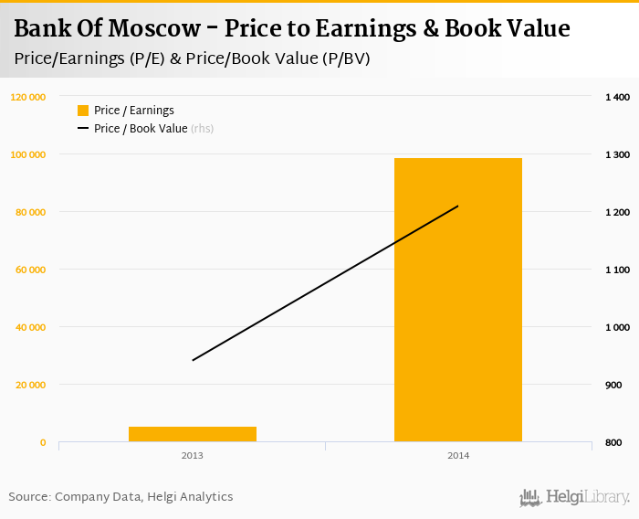 Bank Of Moscow stock traded at RUB 835 per share at the end 2014 implying a market capitalization of USD 3,735 mil.