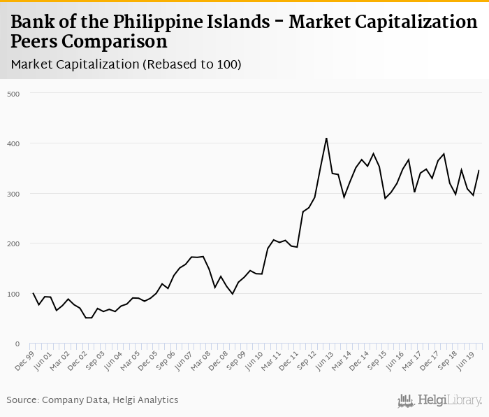 Bank of the Philippine Islands stock traded at PHP 93.0 per share at the end of third quarter of 2019 implying a market capitalization of USD 8,089 mil.