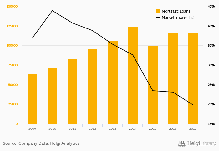 Bank of the Philippine Islands accounted for 19.8% of all mortgage loans issued in Philippines at the end of 2017. Historically, the bank’s market share in mortgage loans reached an all time high of 43.9% in 2010 and an all time low of 19.8% in 2017.