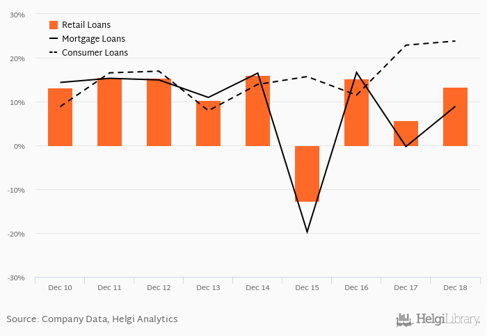 Overall, retail loans accounted for 13.9% of the bank's loan book at the end of 2018-12-31.