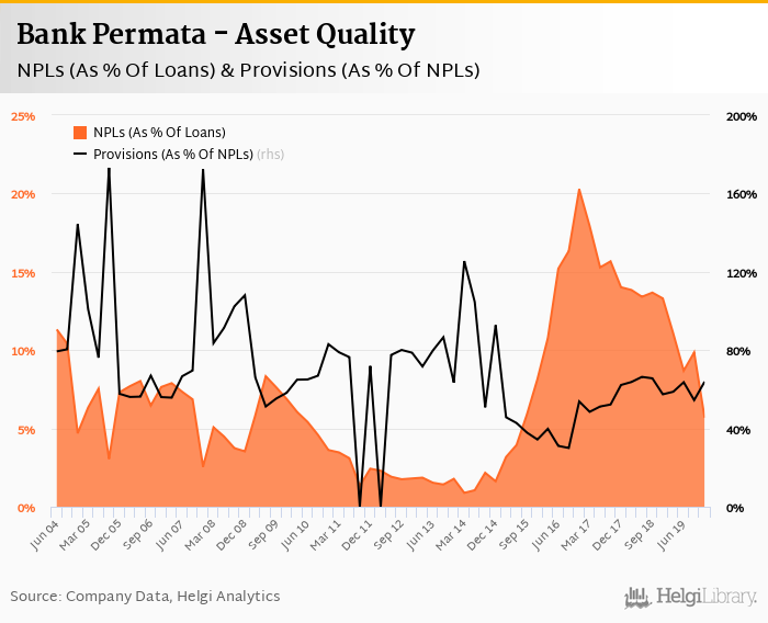 Bank Permata's non-performing loans reached 5.68% of total loans at the end of 2019-12-31, down from 13.3% compared to the previous year. Historically, the NPL ratio hit an all time high of 20.3% in 2016-12-31 and an all time low of 0.884% in 2014-03-31.
