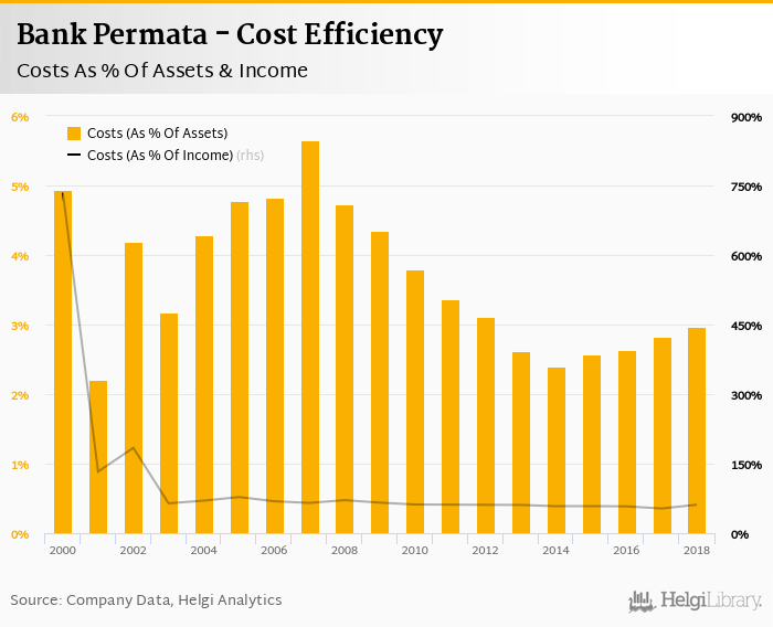 When compared to total assets, bank's cost amounted to 2.97% in 2018, up from 2.83% a year earlier.