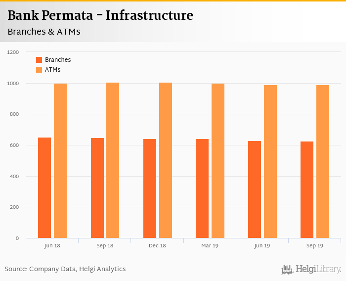 The bank operated a network of 626 branches and 989 ATMs at the end of 2019-09-30.