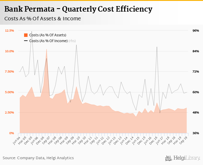 Bank Permata's cost to income ratio reached 59.8% in the third quarter of 2019, up from 59.3% when compared to the previous quarter.