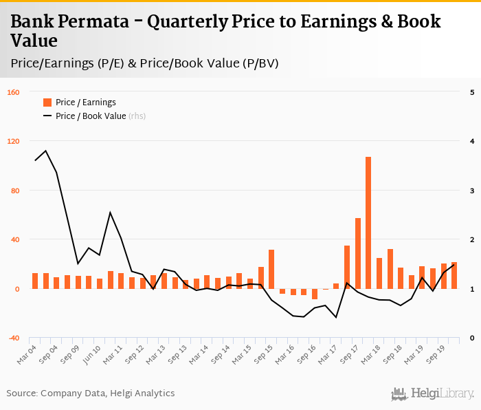 Bank Permata stock traded at IDR 1,265 per share at the end fourth quarter of 2019 implying a market capitalization of USD 2,562 mil.