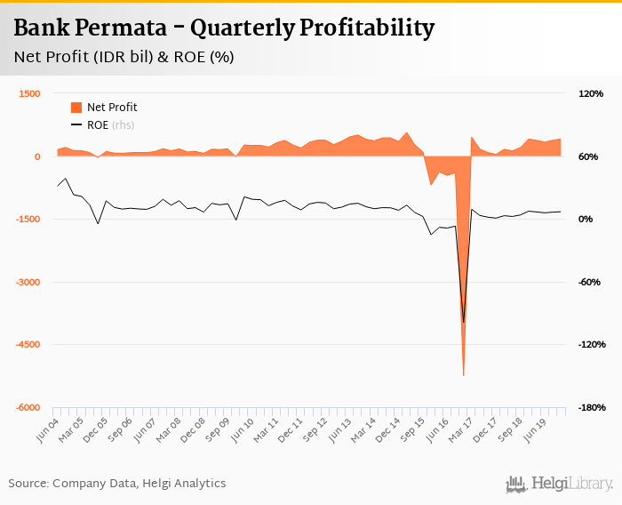 Bank Permata made a net profit of IDR 408 bil in the fourth quarter of 2019, up 0.167% when compared to the same period of last year. This implies a return on equity of 6.83%.