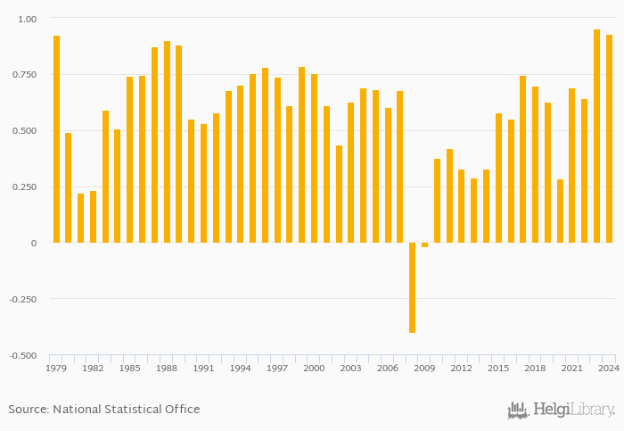 Historically, bank pre-tax ROA in Netherlands reached an all time high of 0.951% in 2023 and an all time low of -0.400% in 2008. When compared to Netherlands's main peers, bank pre-tax ROA in Belgium amounted to 1.01%, 1.04% in Denmark, 0.581% in Germany and 0.696% in United Kingdom in 2024.