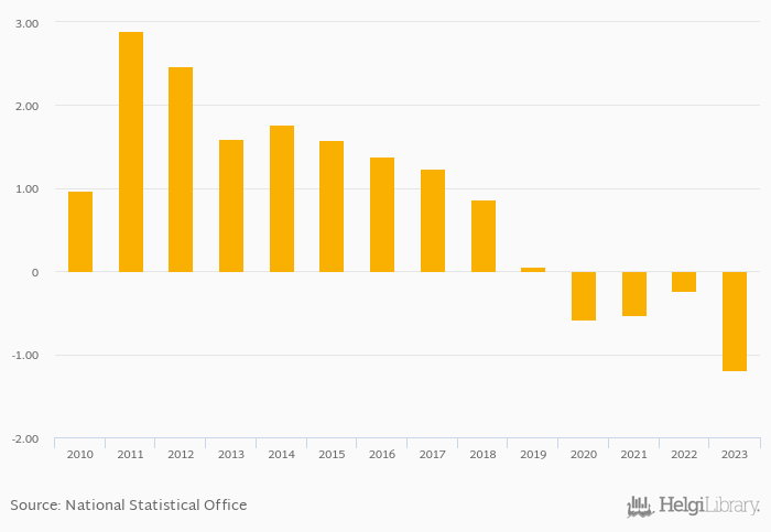 Bank pre-tax ROA fell 395% to -1.18% in Equatorial Guinea in 2023, according to the National Central Bank.