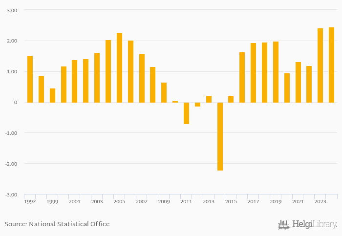 Historically, bank pre-tax ROA in Hungary reached an all time high of 2.44% in 2024 and an all time low of -2.22% in 2014. When compared to Hungary's main peers, bank pre-tax ROA in Austria amounted to 1.29%, 1.40% in Czechia, 1.68% in Poland and 1.45% in Slovakia in 2024.