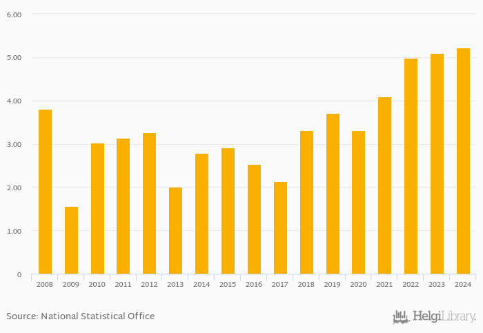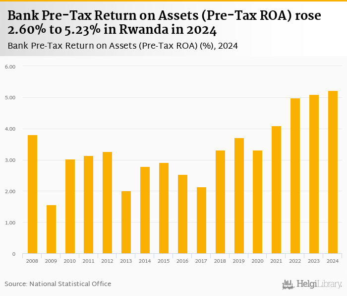Historically, bank pre-tax ROA in Rwanda reached an all time high of 5.23% in 2024 and an all time low of 1.56% in 2009.